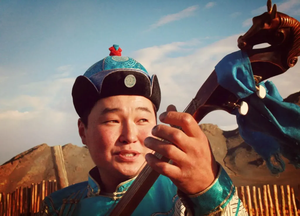 He blends ancient khöömei styles with subtle contemporary elements, drawing on his skills with instruments like the igil fiddle and doshpuluur lute—many of which he crafts himself—to create works that evoke the spiritual essence of his Kazak heritage.