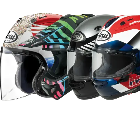 Today, Arai produces full-face, open-face, off-road, and touring helmets, all handmade in Japan using super fibres and R75 shell shapes for optimal energy absorption.