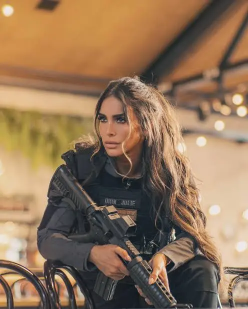 Orin Julie, a prominent Israeli model and social media influencer, earned the nickname “Queen of Guns” for her striking photos posing with firearms, often blending femininity with combat themes.