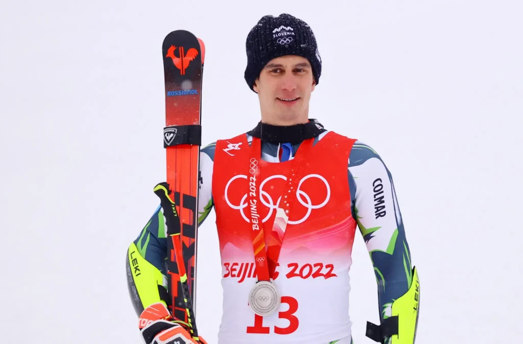 At the 2018 PyeongChang Olympics, he stunned with fourth in giant slalom, just 0.35 seconds off bronze, while his 2022 Beijing silver—eighth after run one, then blistering to overtake all but Marco Odermatt—delivered Slovenia’s first Olympic alpine medal in eight years, a moment that resonated deeply amid his father’s recent passing.